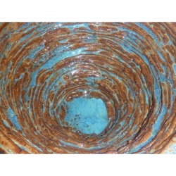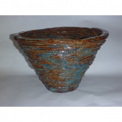 "Layered" - as the pieces are made up of many individual layers, that come together to form the whole. Each piece echoes the ebb and flow of water, creating rhythm in the movement of the clay as well as using a glaze that starts flowing when it is fired to 1280 degrees. There are also some Raku pieces that were inspired by the afternoon reflections on the water.