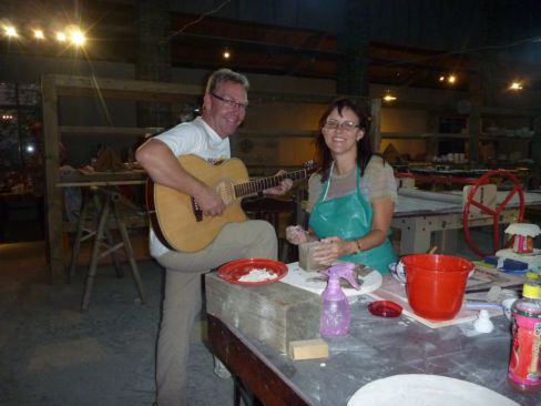 Guess who was asked to perform at the event - my husband Mark. He was set up inside the art gallery, so when the formalities on stage were over and people went inside, there he was playing his guitar. There were several camera crews for the TV stations. We probably made the evening news.