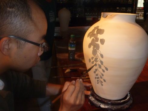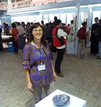 Our opening, which is part of the International Ceramics Fair, was at a gallery near our studio. It was opened by the Mayor of Jingdezhen. There were Chinese and Taiwanese artists as well as our Australian and Brazillian group. There were Police with a "police line" blockade, as well as a huge blow up arch. There was a stage and seats for the dignitaries. There were pretty girls in evening dresses, (even though the opening was at 2.30pm). Tried tea wine, a bit like sherry.